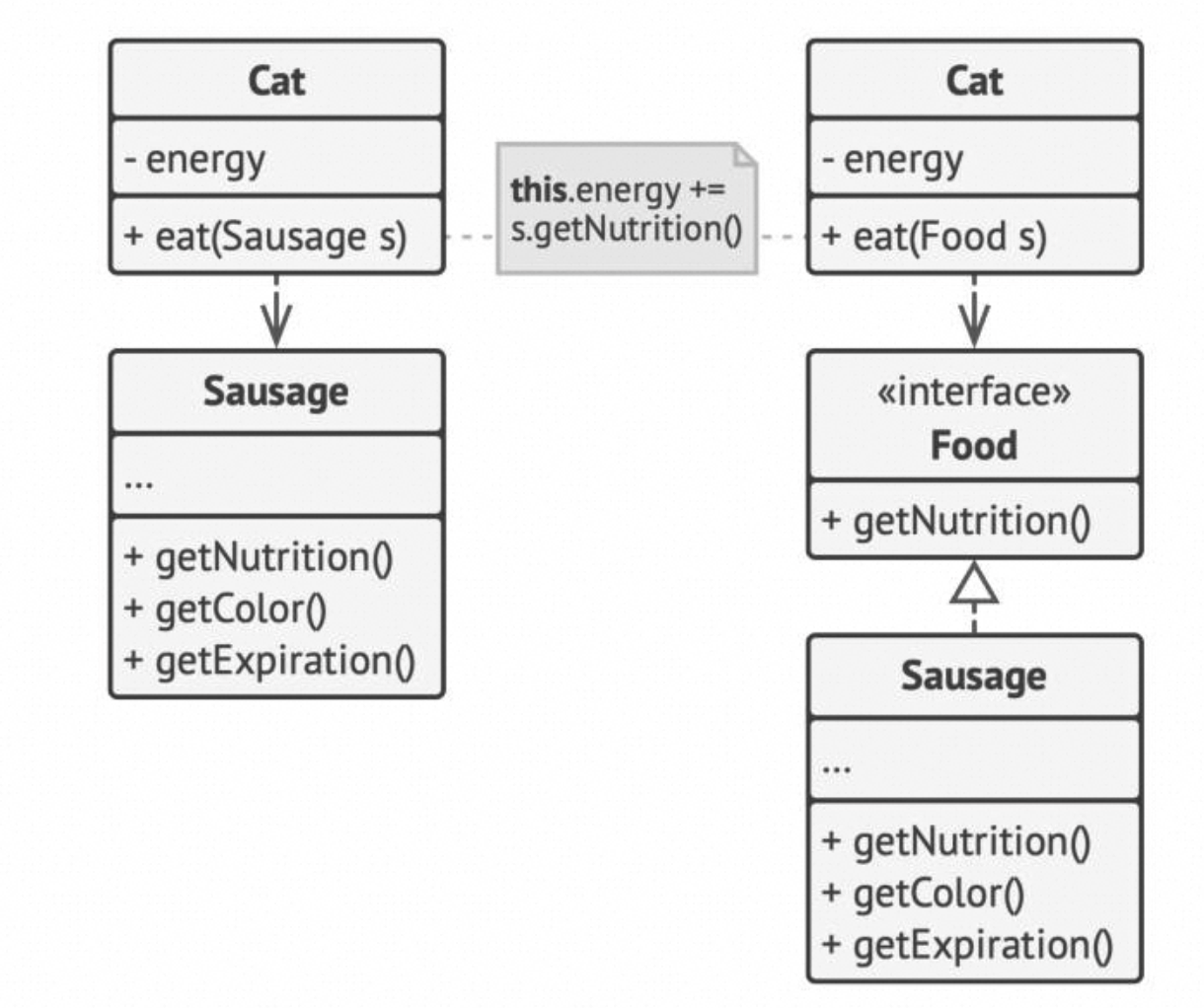- 现在让有需求的类依赖于这个接口, 而不依赖于具体的类。