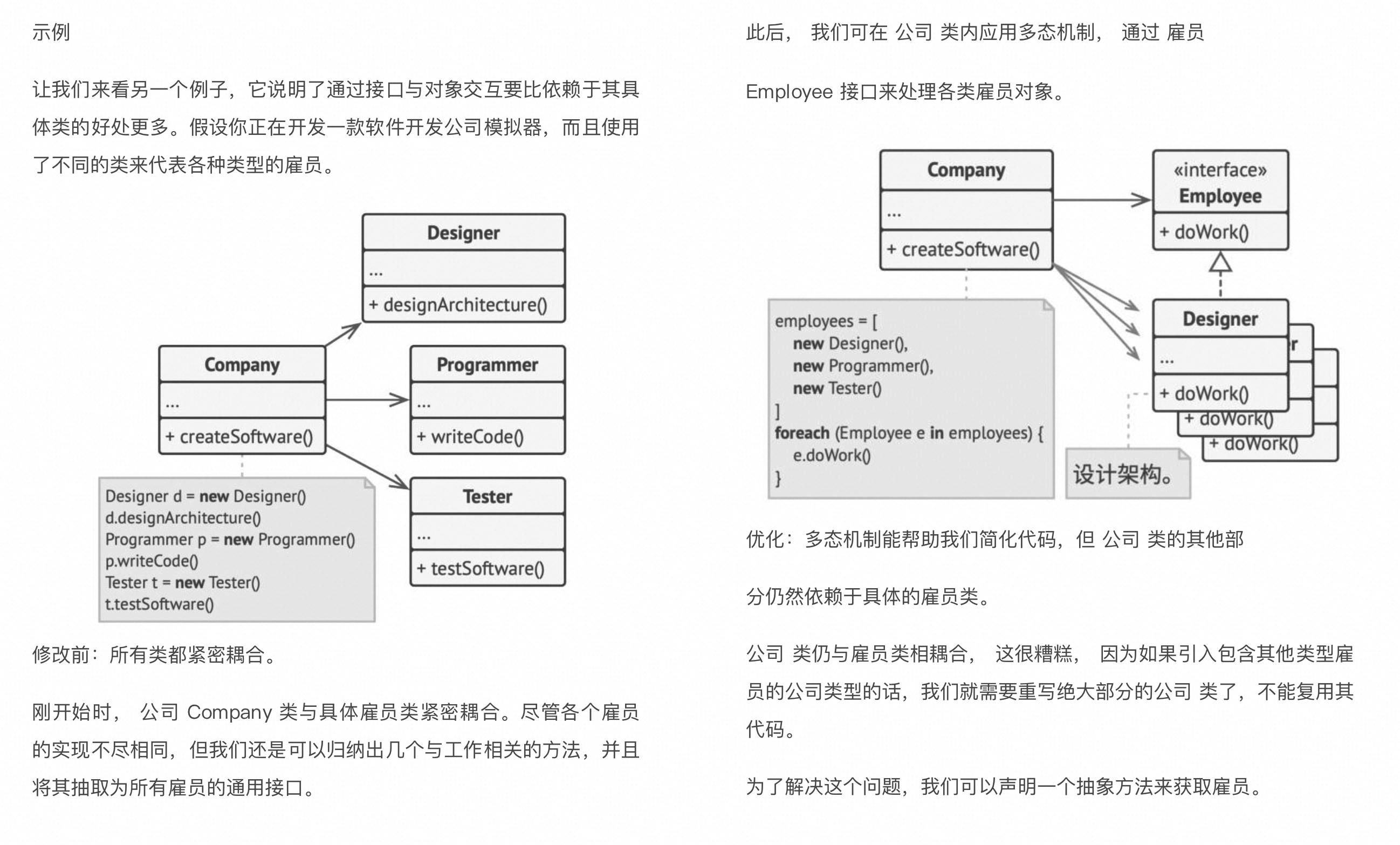 面向接口进行开发, 而不是面向实现; 依赖于抽象类型,而不是具体类。